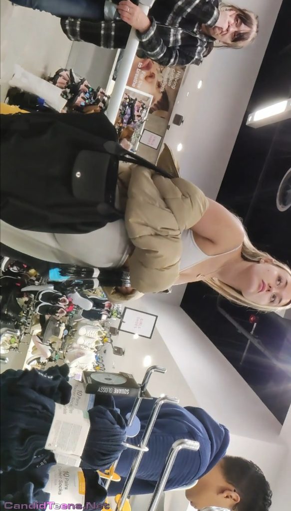 Awesome cheeks blonde in white shorts at store creepshot