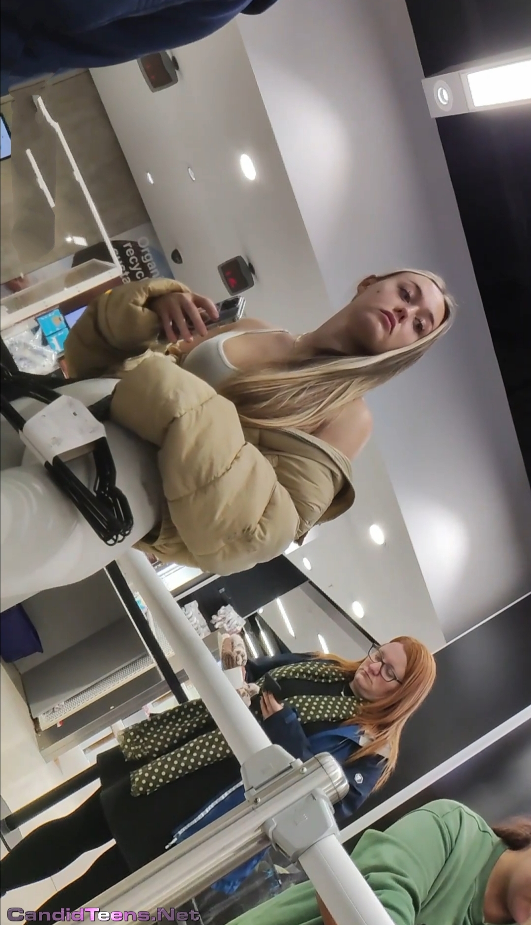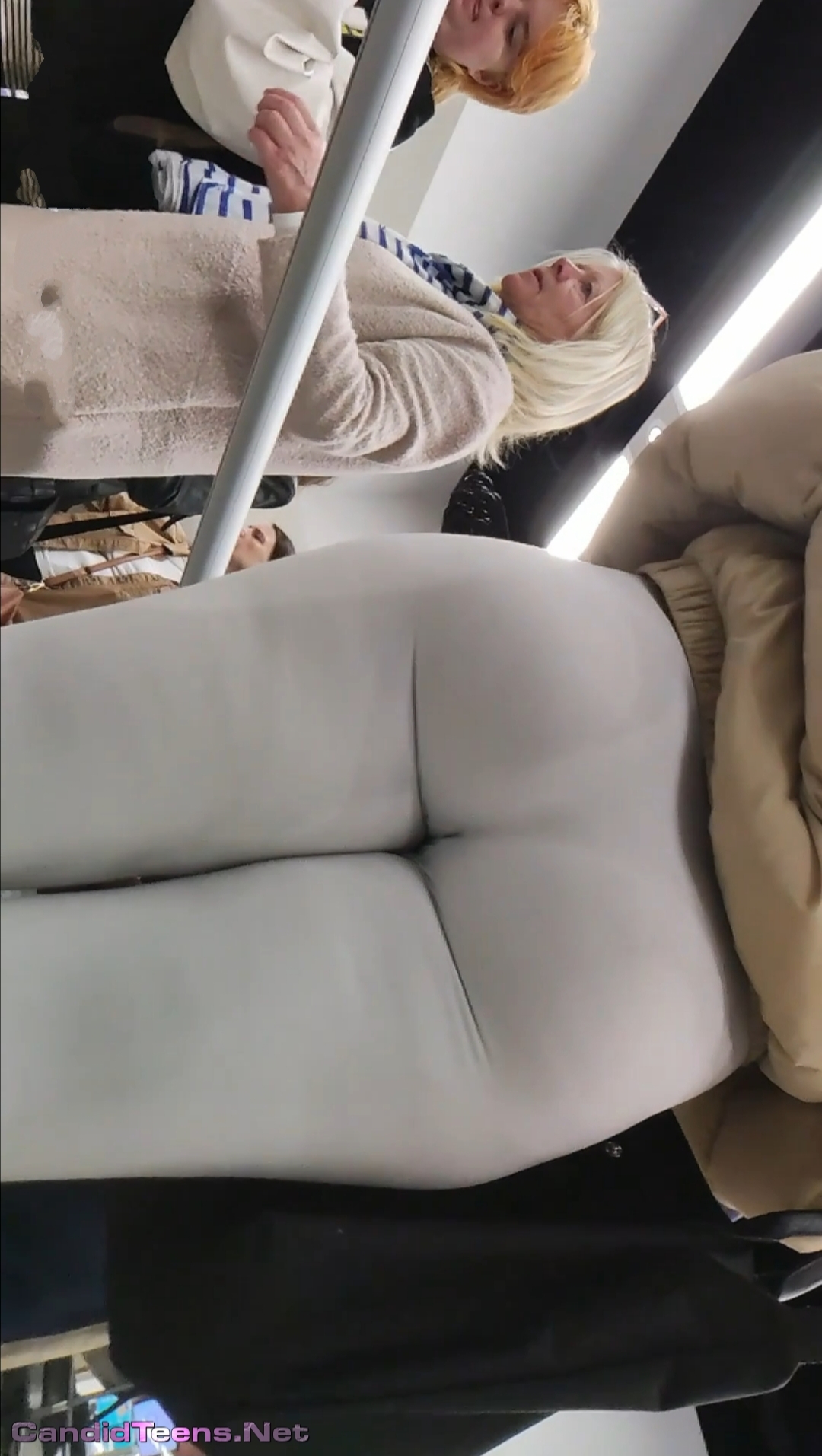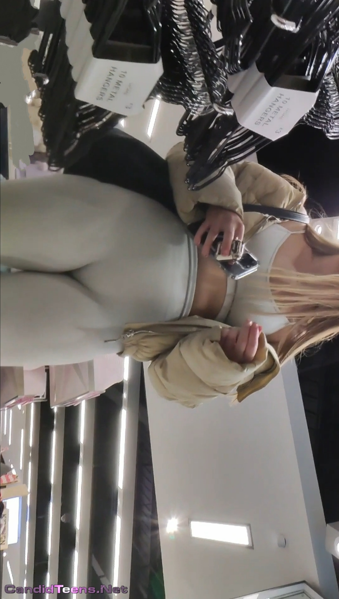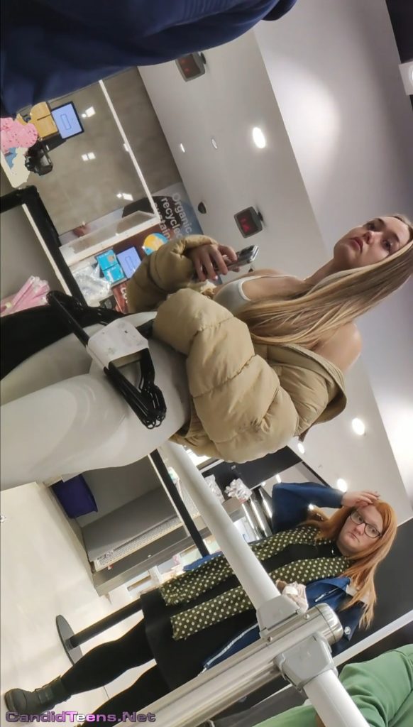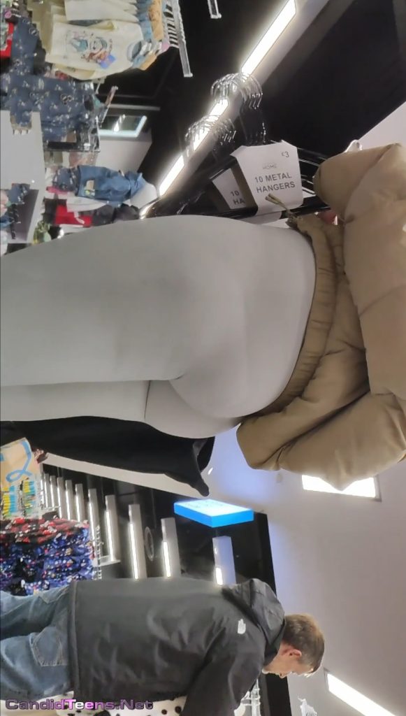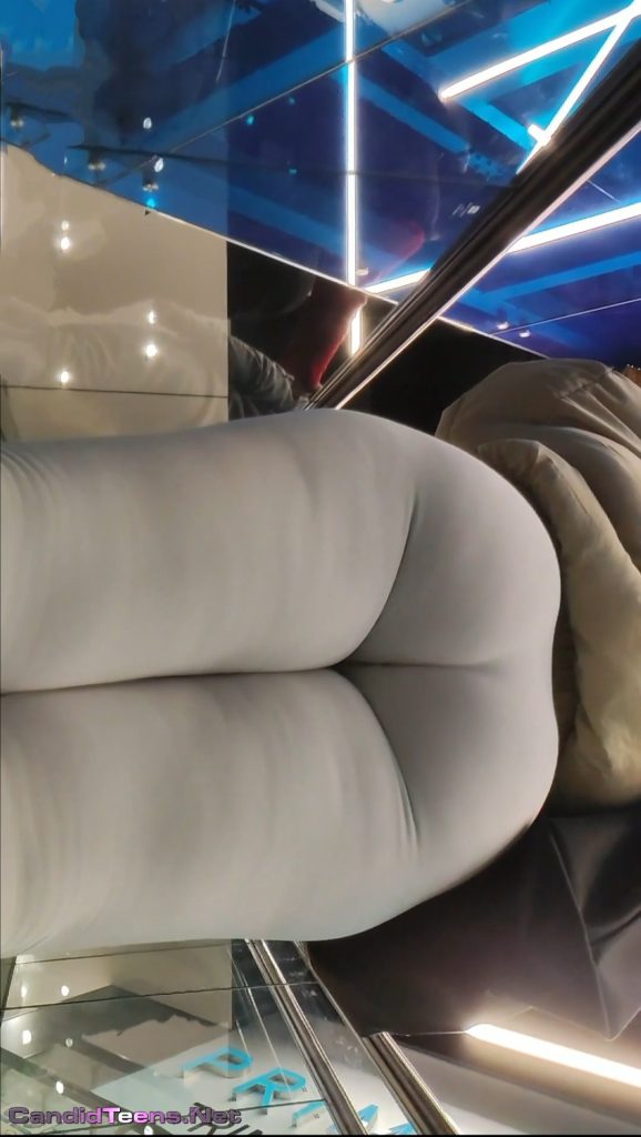 Hot big ass sexy blonde girl in tight leggings closer creepshot.