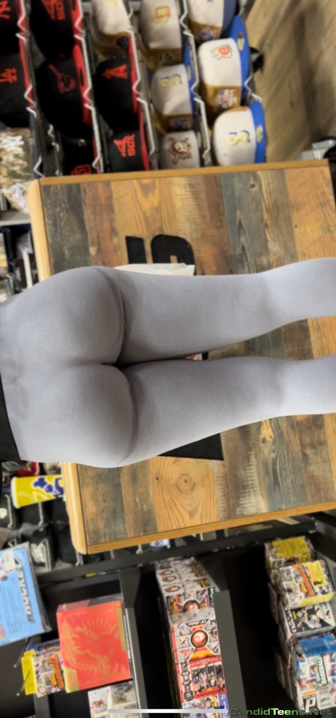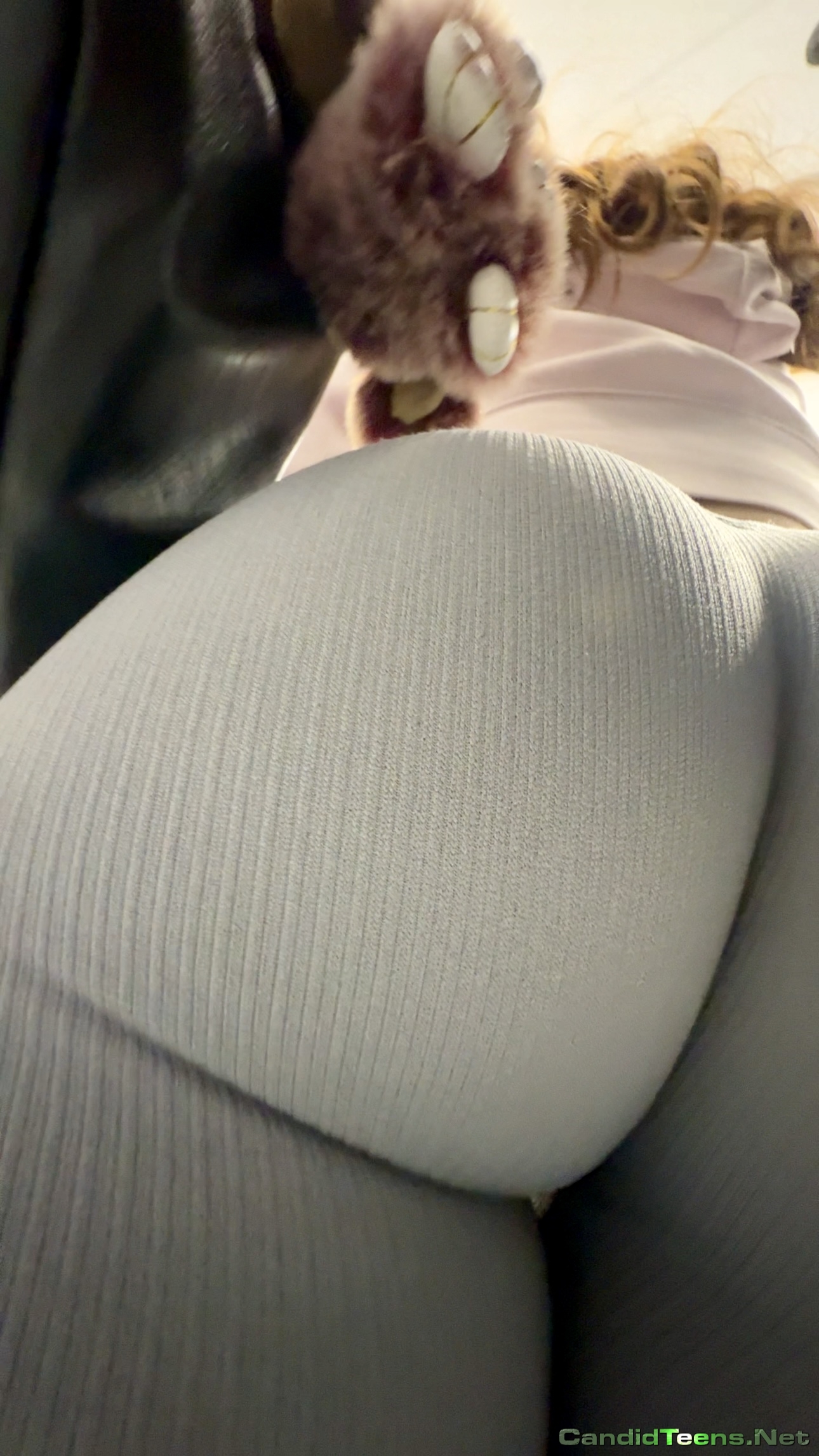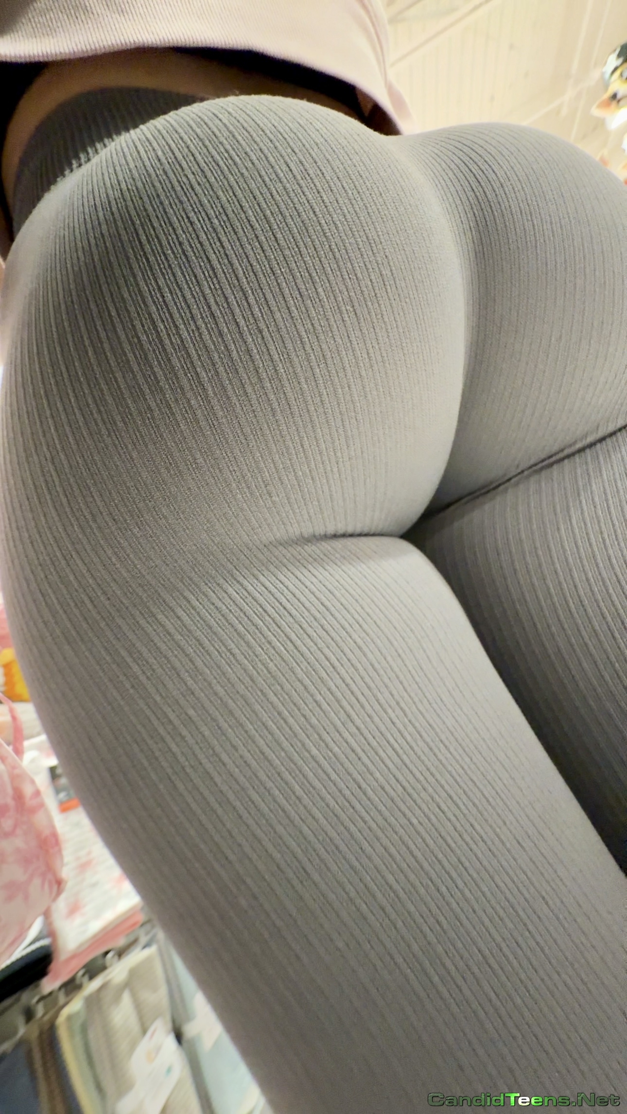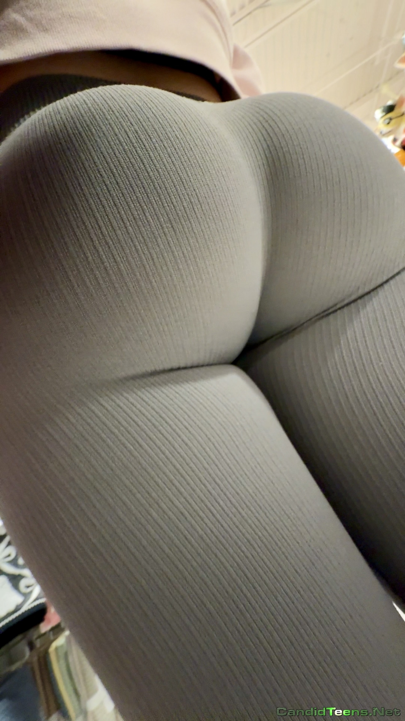 Super hot nasty bubble ass Brunette vs blonde girl in tight grey leggings creepshot.