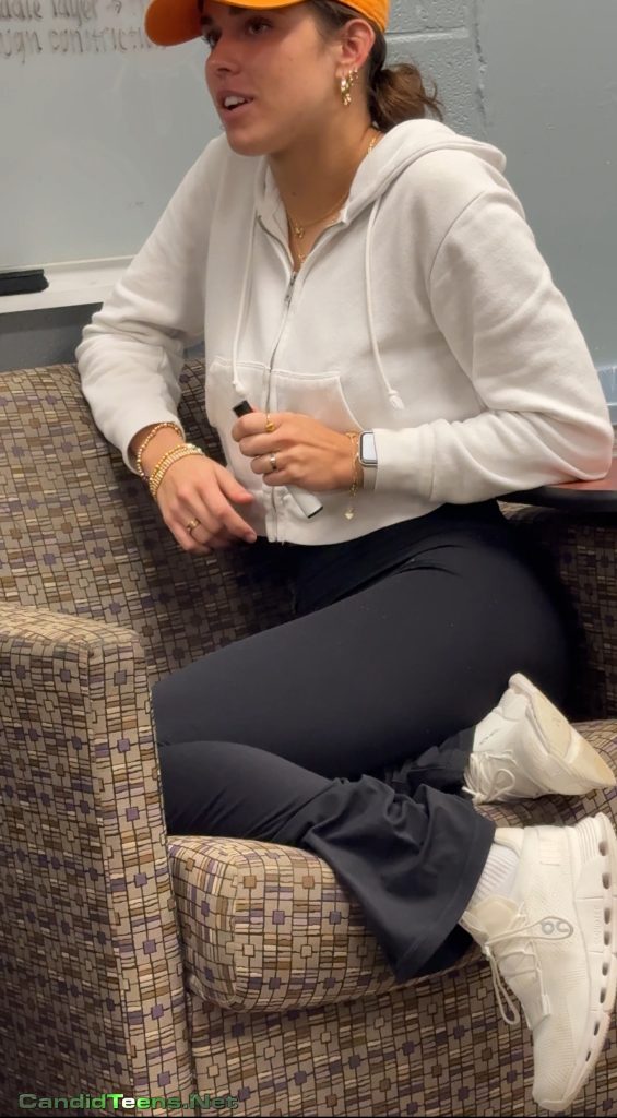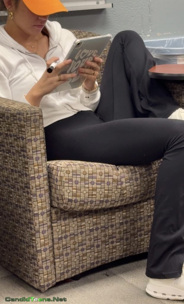 Sexy college girl lounging in a cozy hoodie and super tight black leggings, showing off her perfect round bubble butt and thick thighs from every angle. Candid voyeur shots with juicy close-ups of her peachy ass perched on the couch. More hot leggings candid teens at CandidTeens.Net!