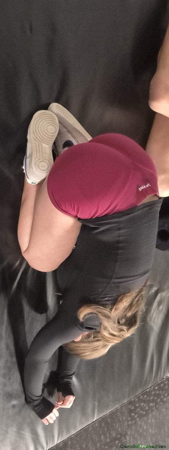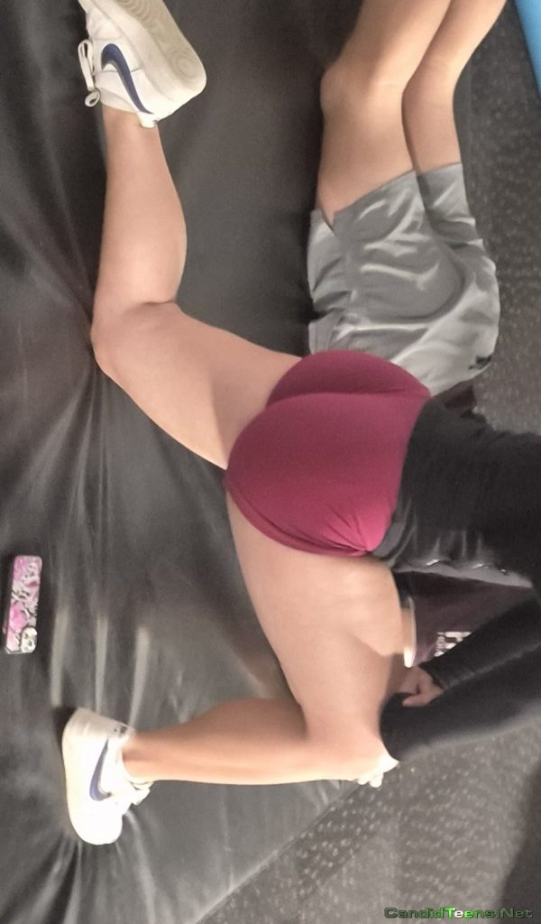 Sexy bubble butt yoga teen tight ass in pink shorts and vpl creepshots.
