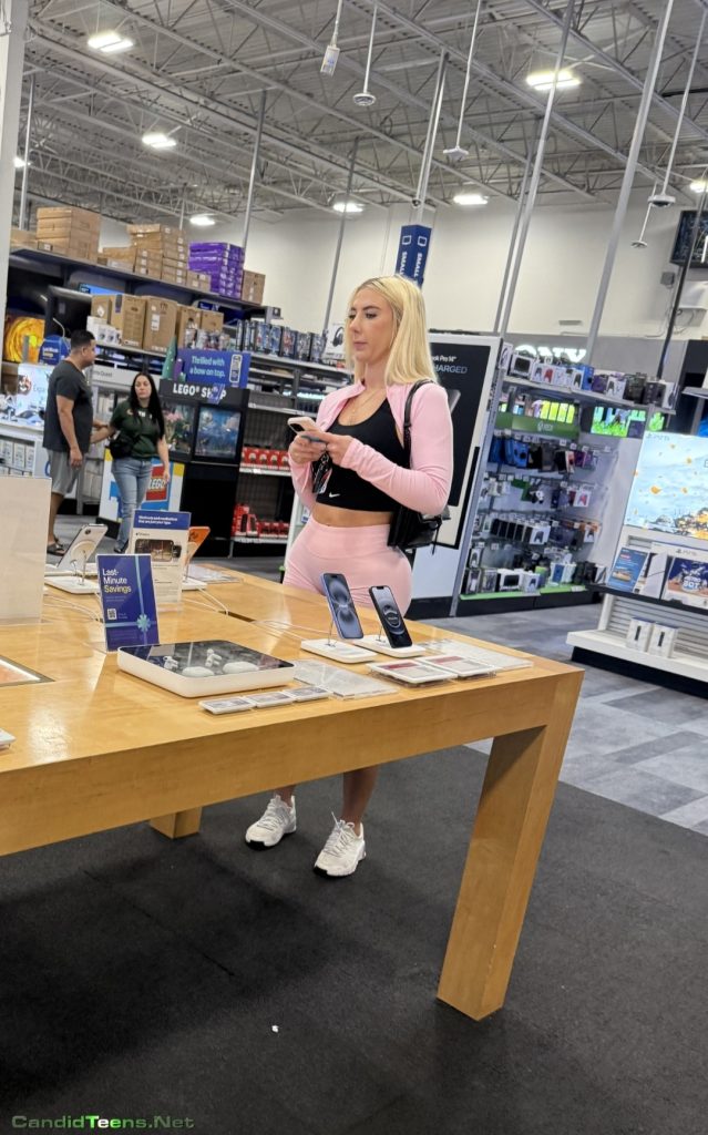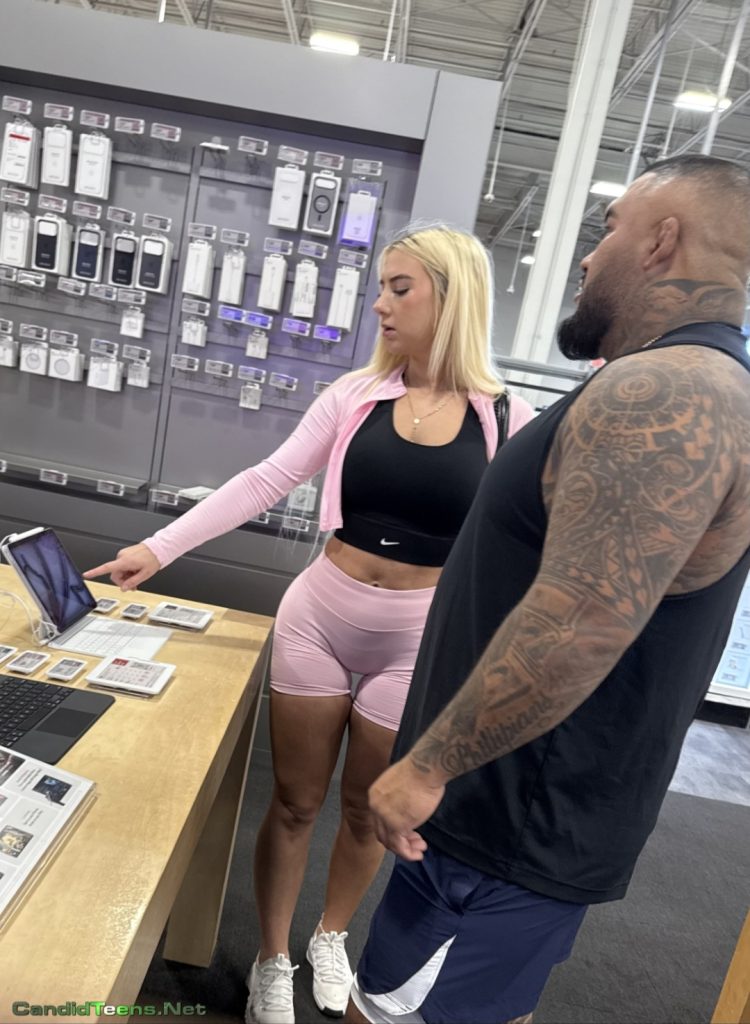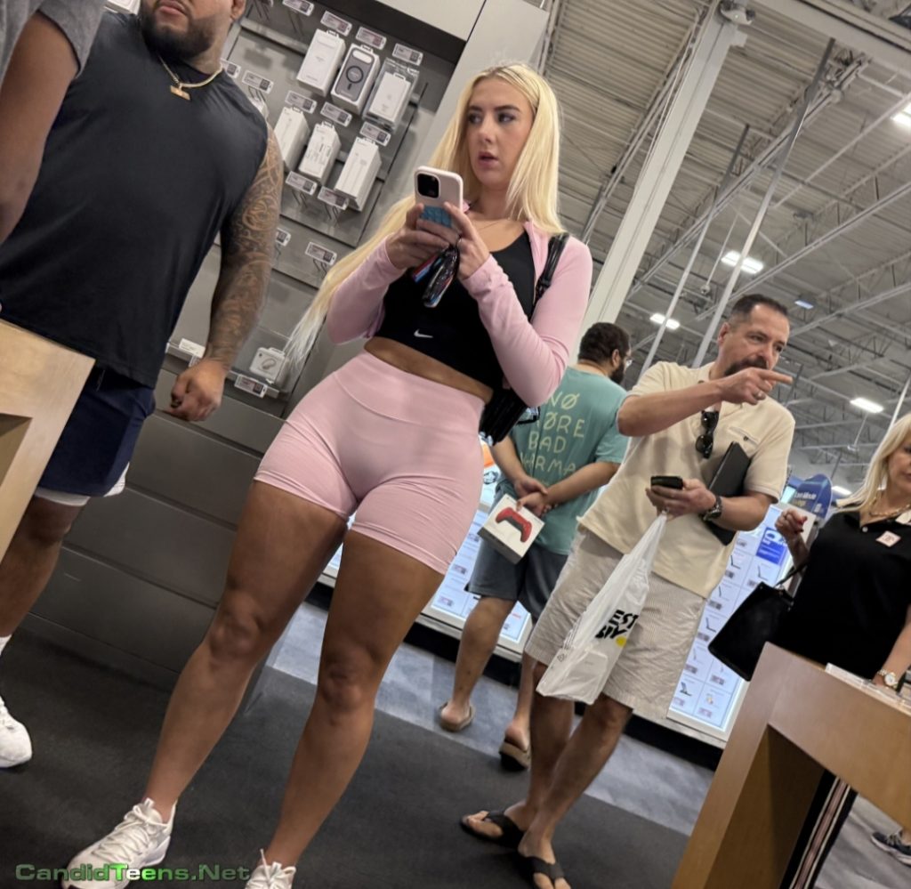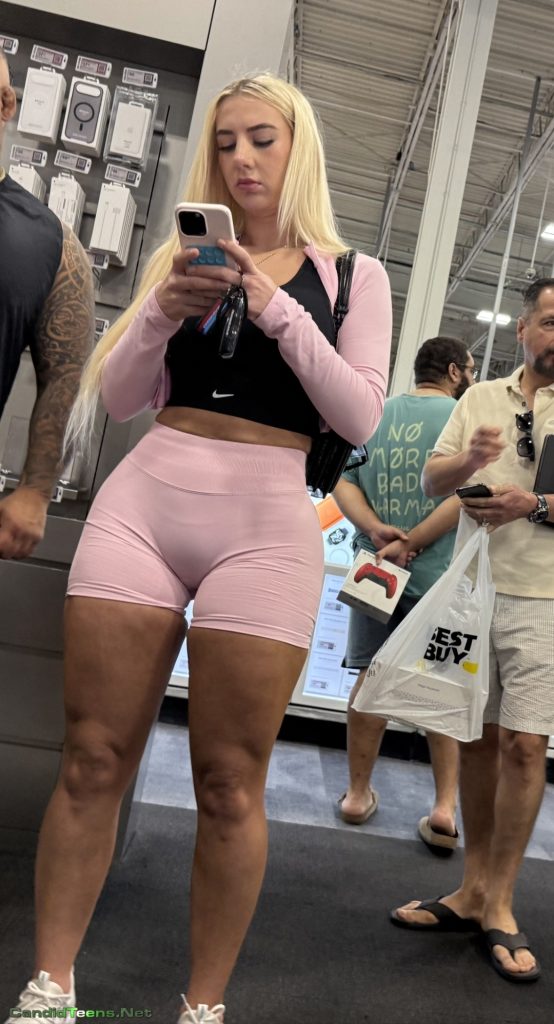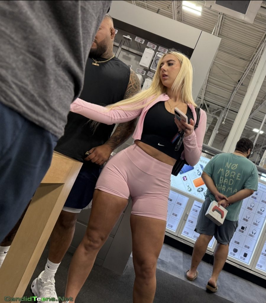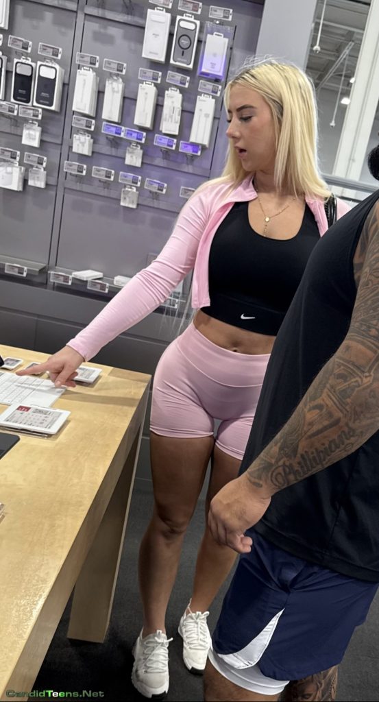 Hot blonde baddie in tight shorts with big ass and cameltoe caught on cam at apple store.