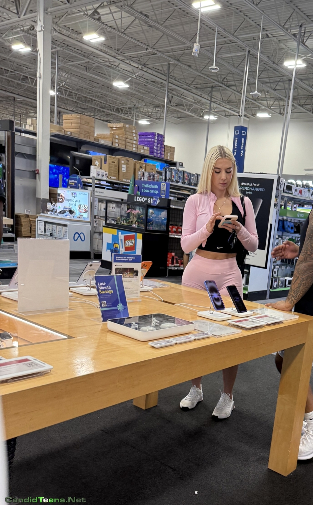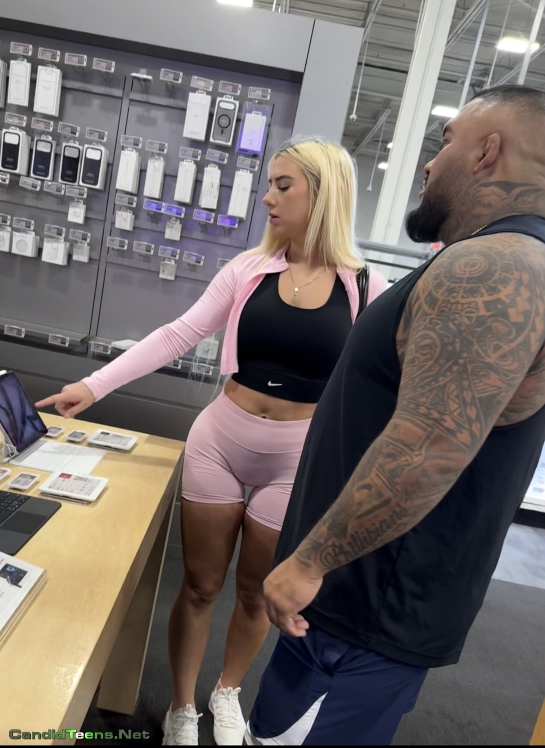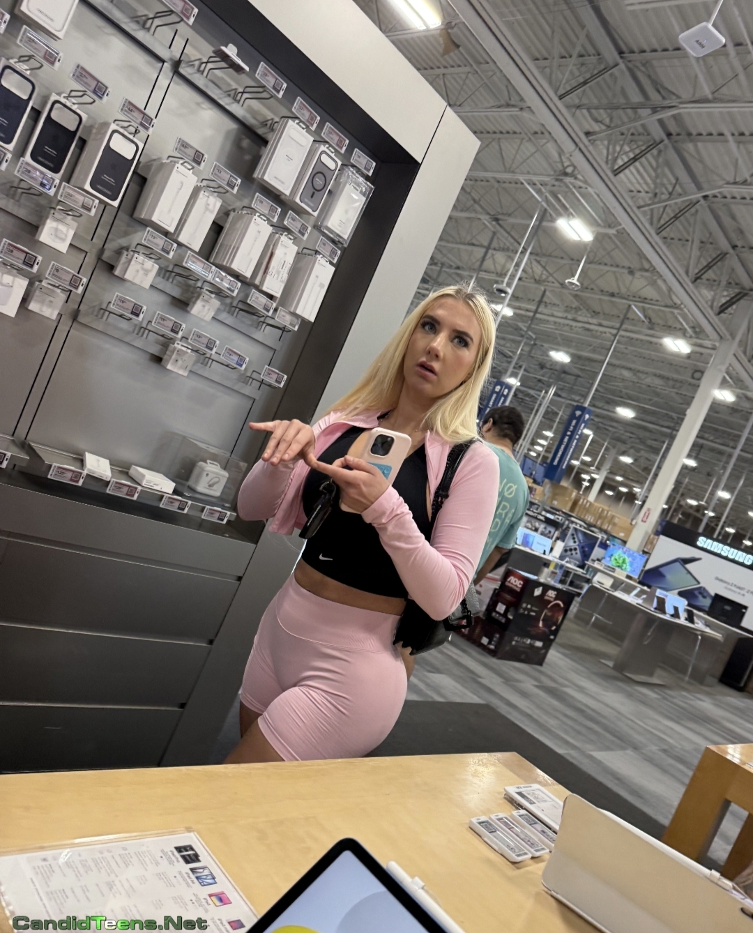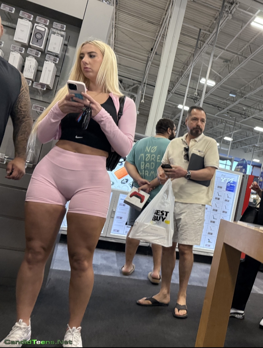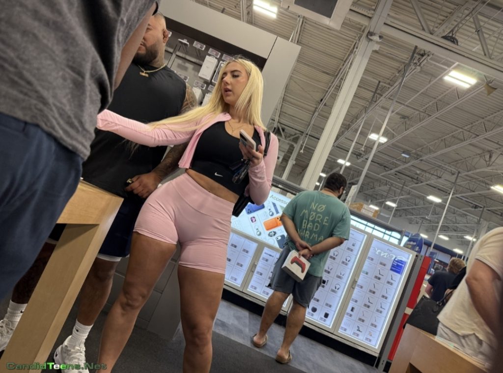 Buy MembershipHot blonde baddie in tight shorts with big ass and cameltoe caught on cam at apple store.