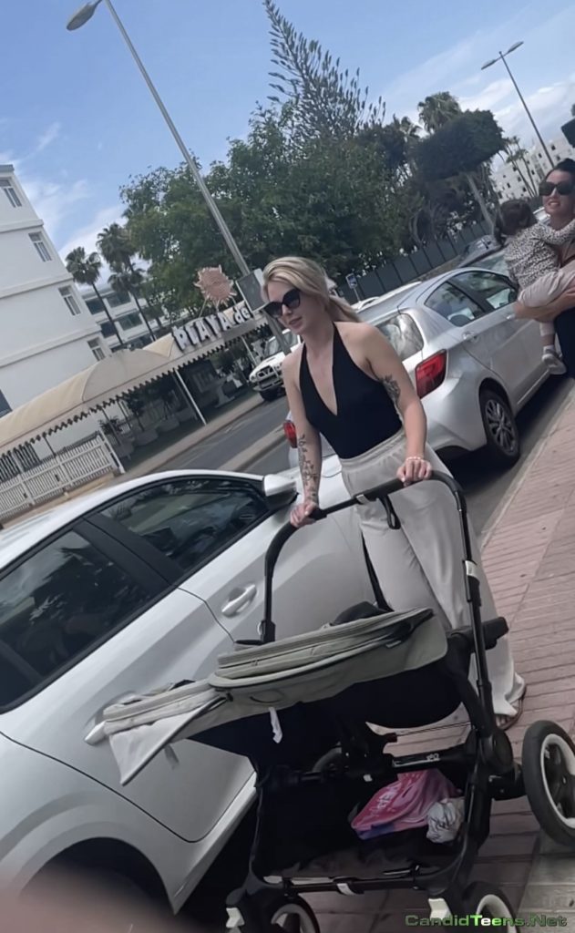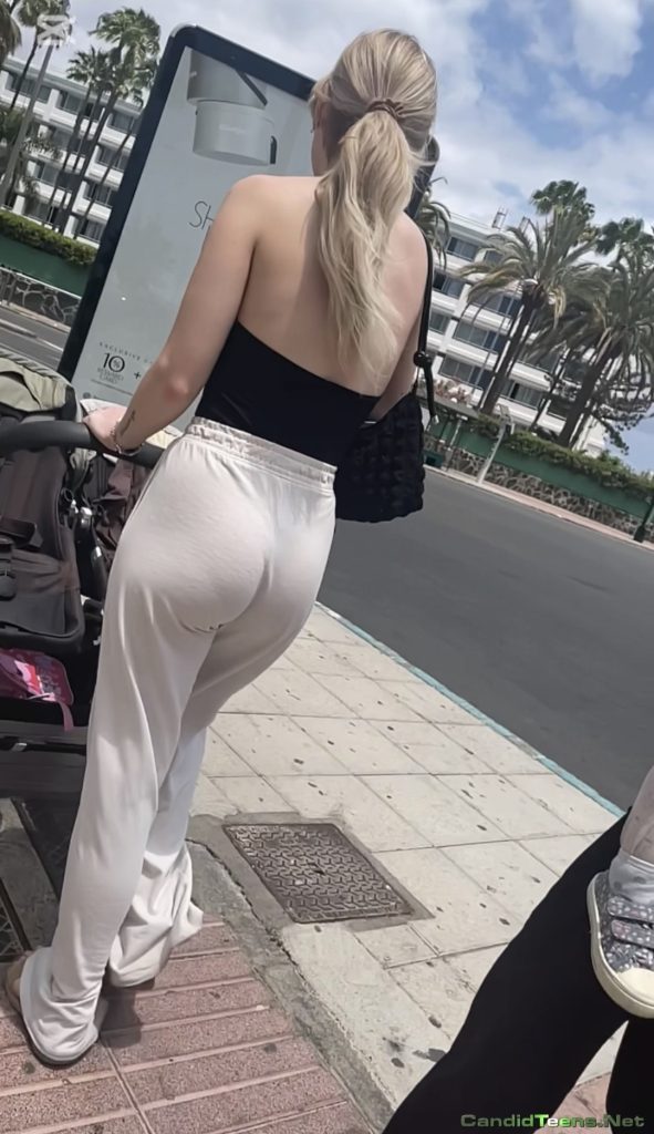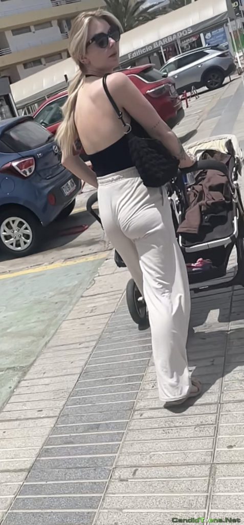 Sexy bubble ass milf mom in tight pajama creepshot jiggling on the street.