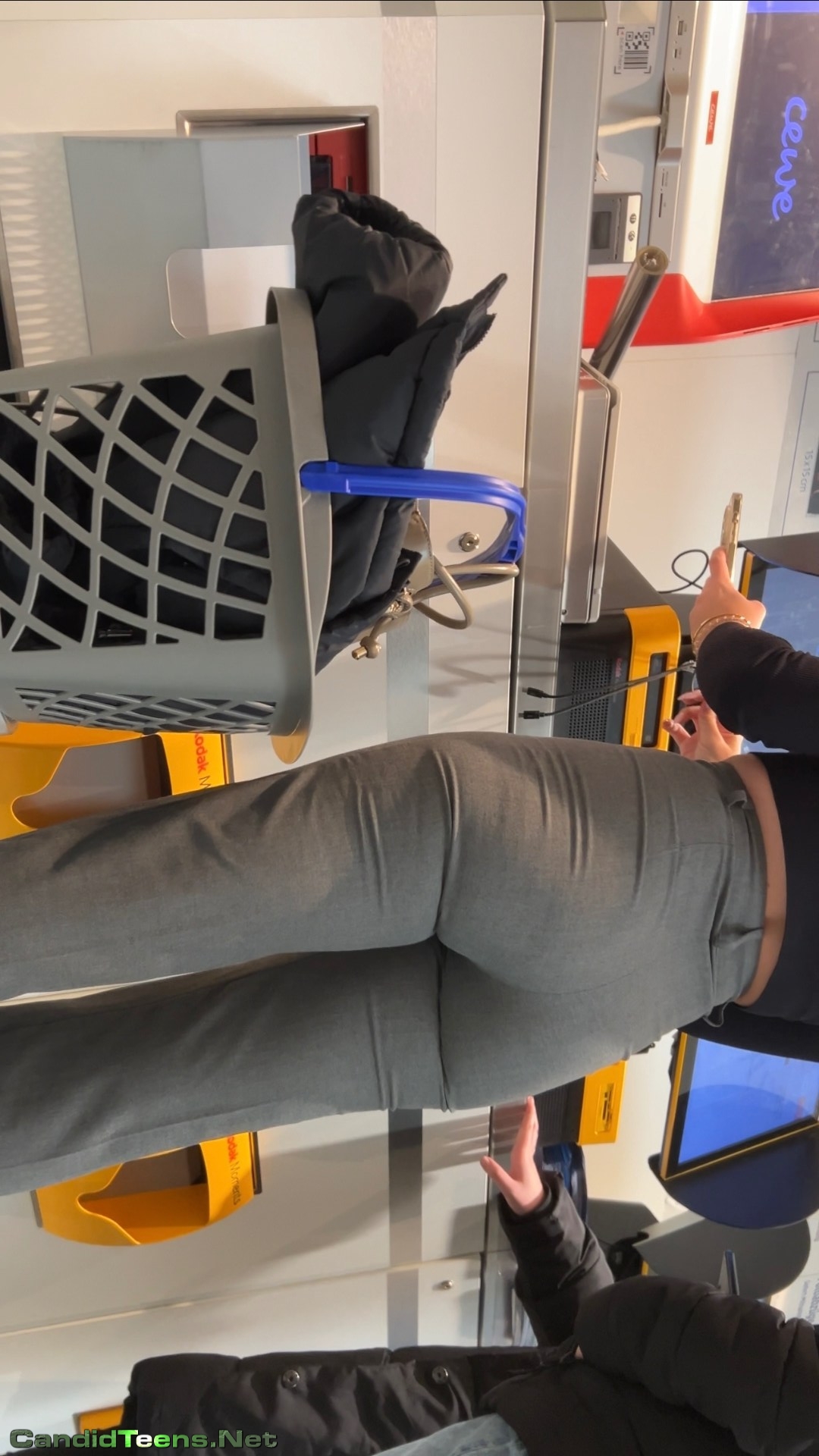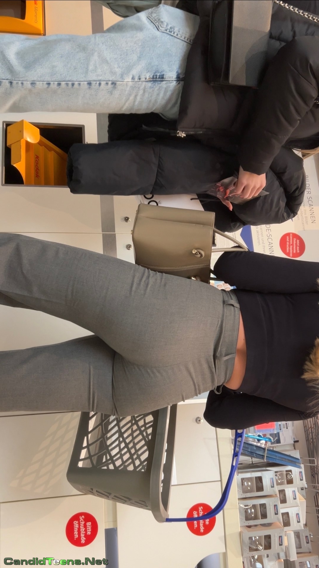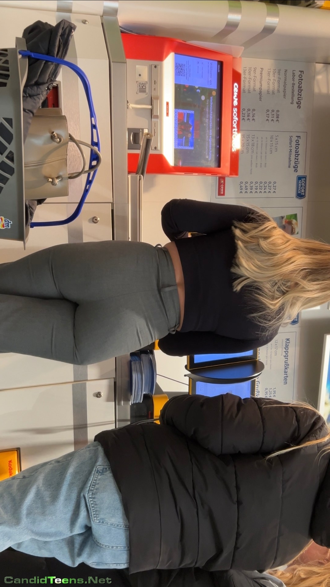 Super hot blonde girls with tight ass in tight grey pants shopping together at store caught on creepshot cam.
