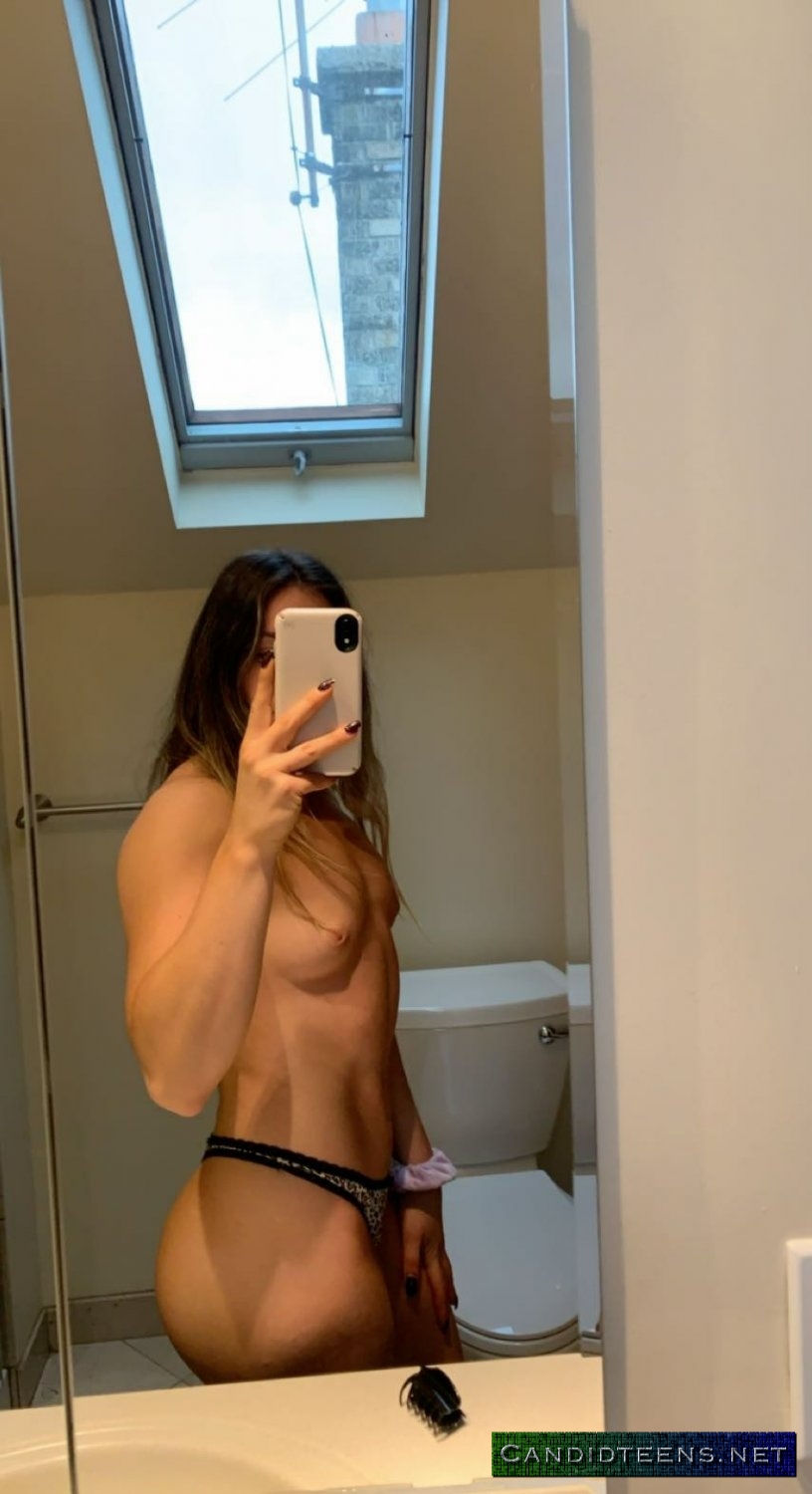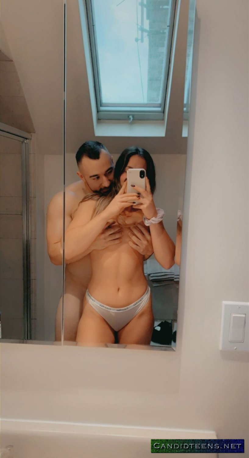 Hot tight body fit gym girl sexy snapchat nudes with her boyfriend flashing boobs and pussy in mirror.