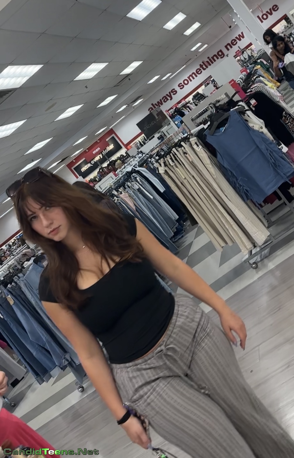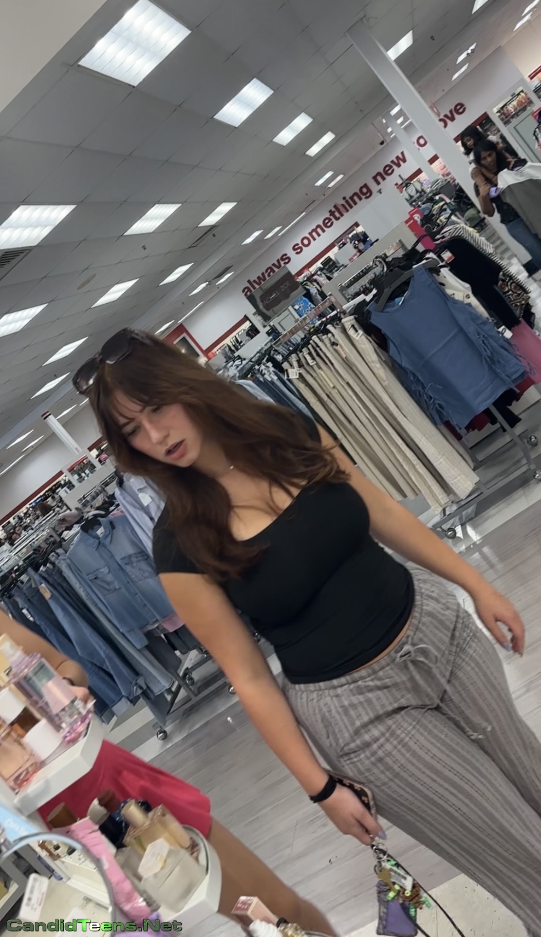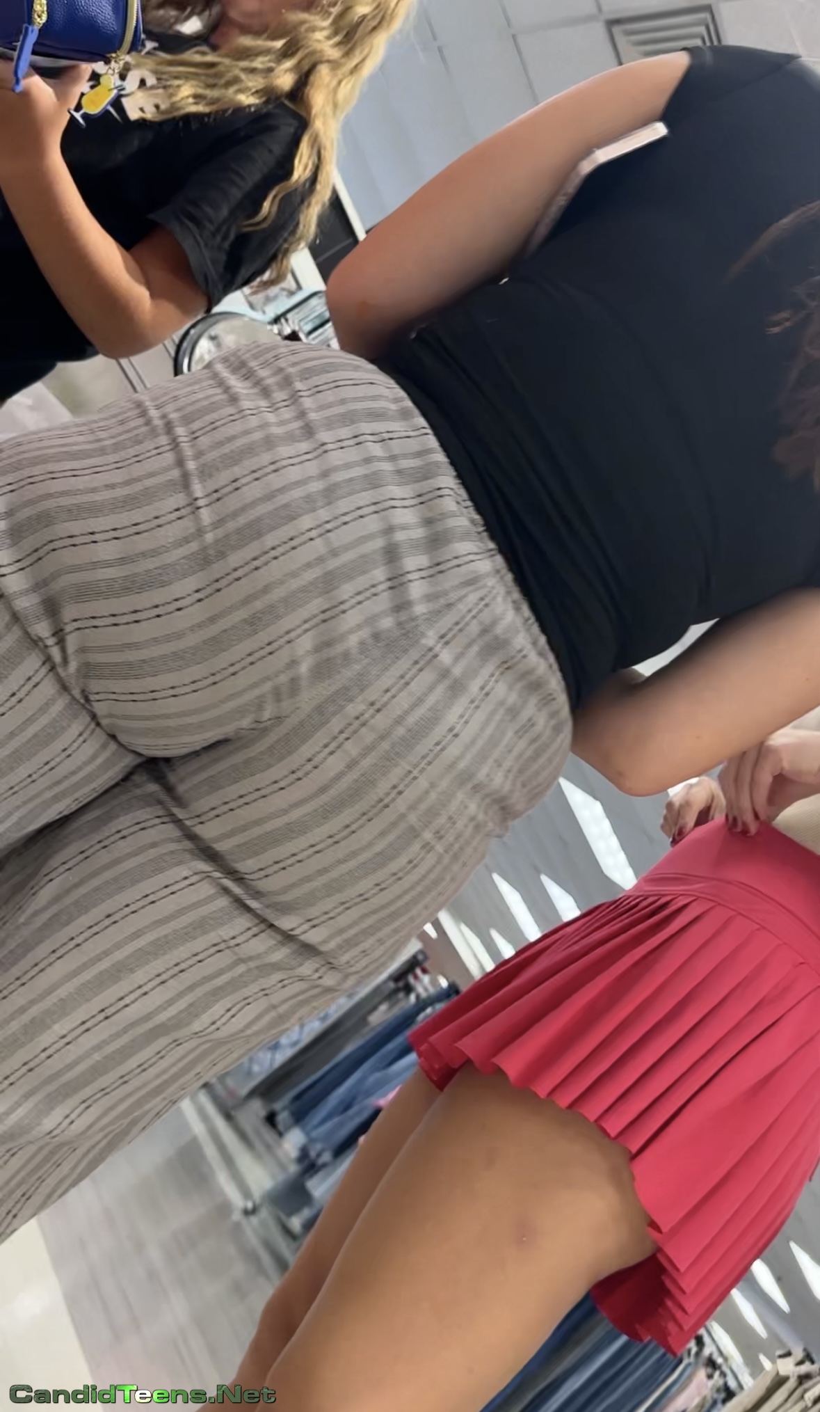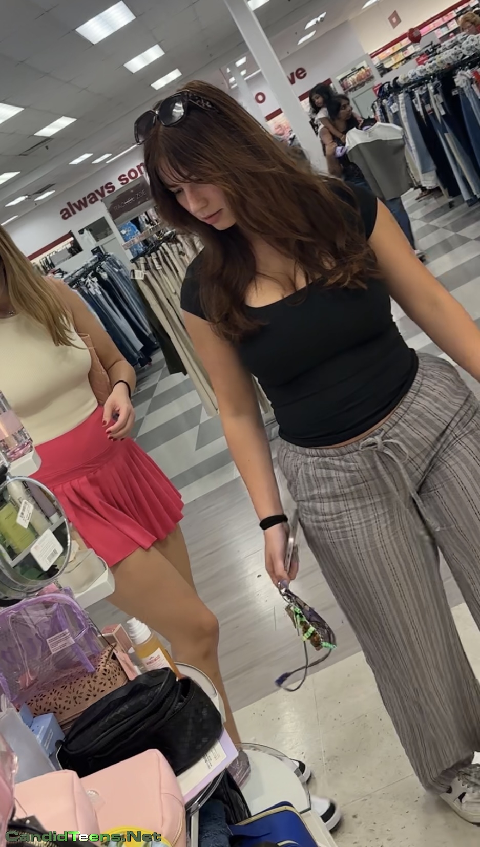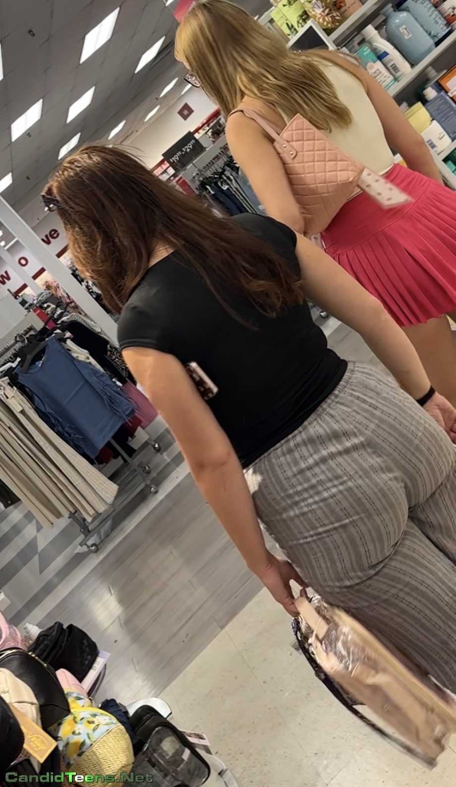 Hot big ass brunette in pajama at store with her sexy friend caught on candid cam.