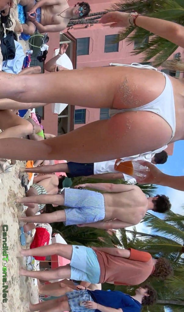 Cameltoe pussy and beautiful tits teen at beach voyeur