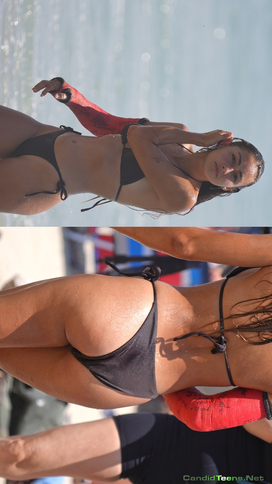 Hot Latina in Tiny Black Bikini on her Wet Bubble Butt Closeup