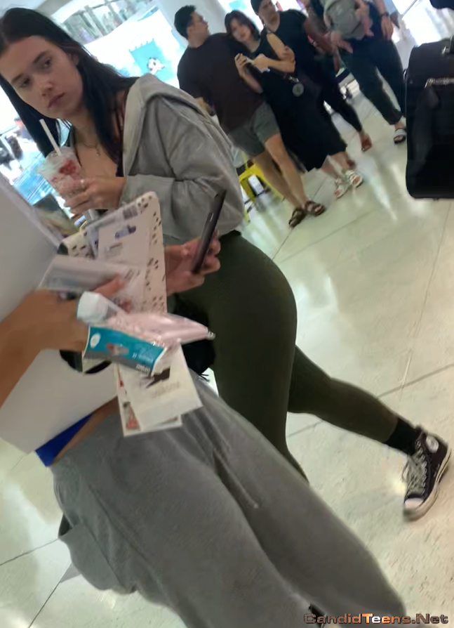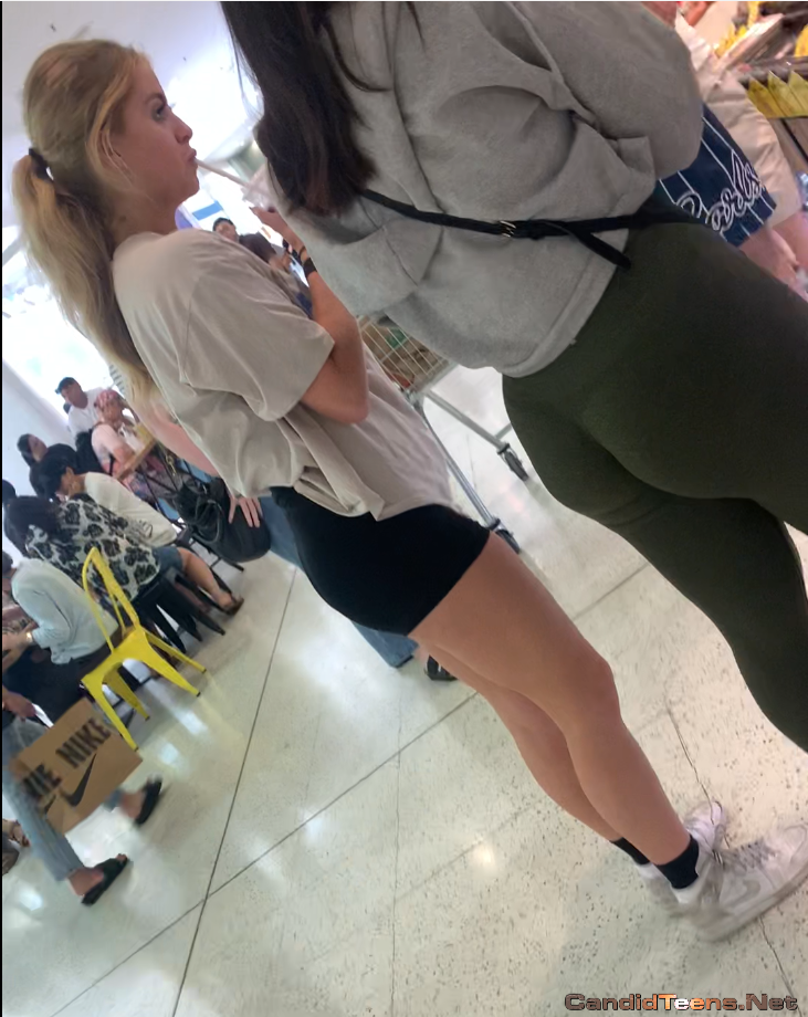Enjoy hot girl bubble buttocks sexiest creepshots wearing tight green leggings, she looks very fit and fuckable in these tight yoga leggings.