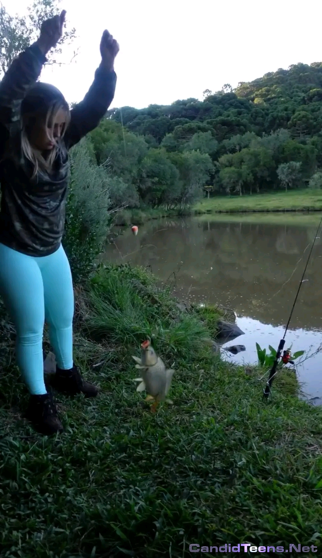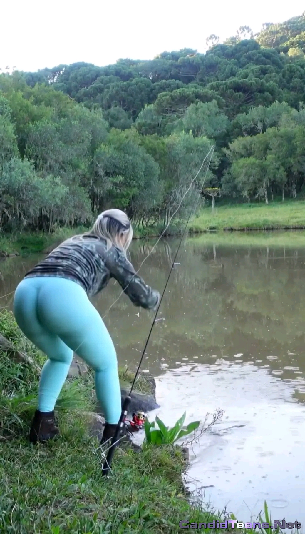 Big sexy pawg neighbour in tight leggings fishing and bending over at lake creepshots.