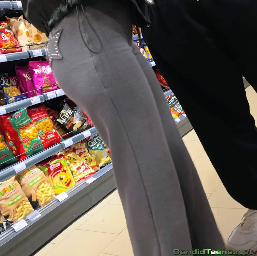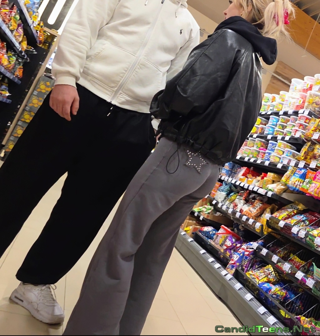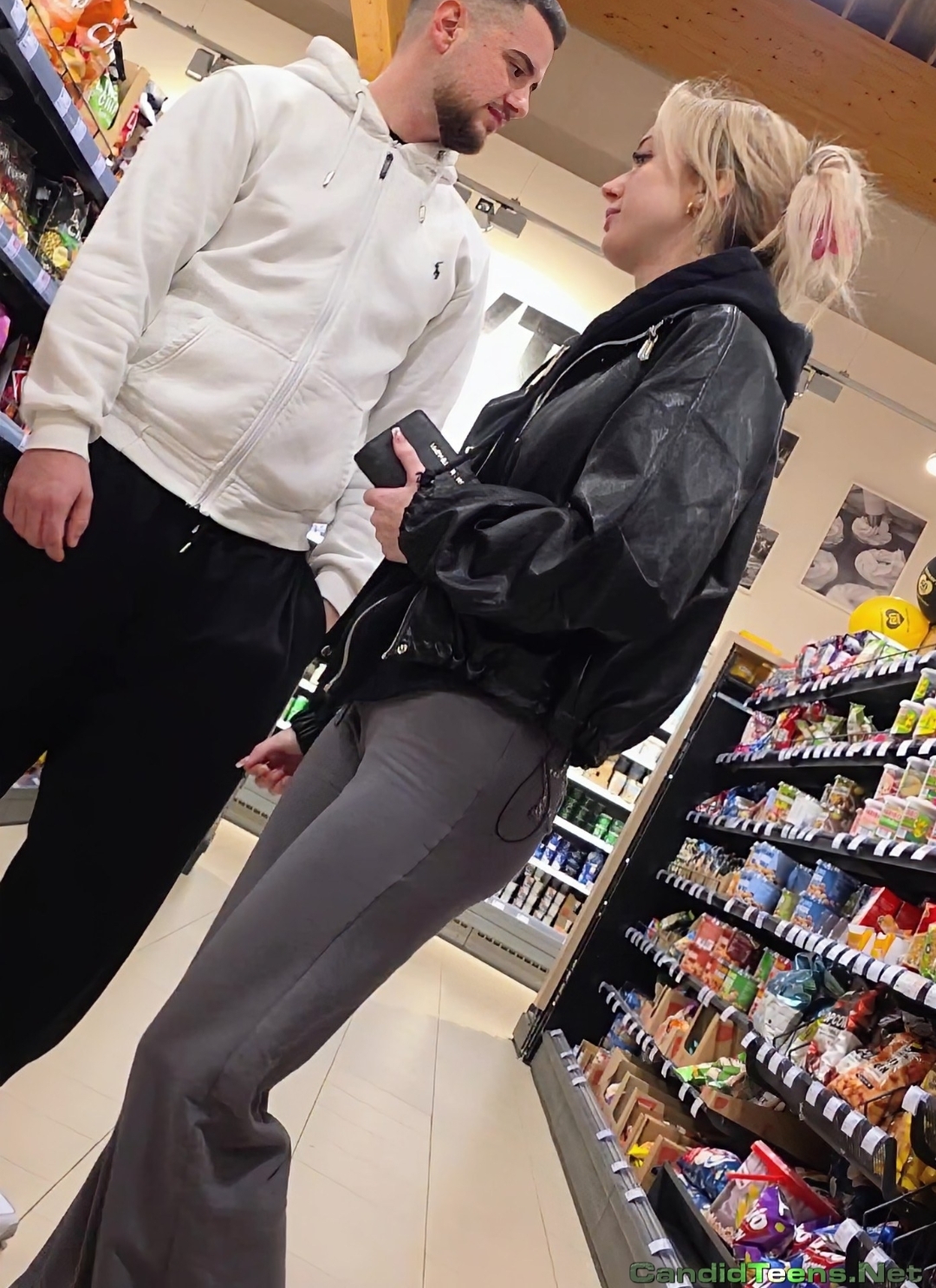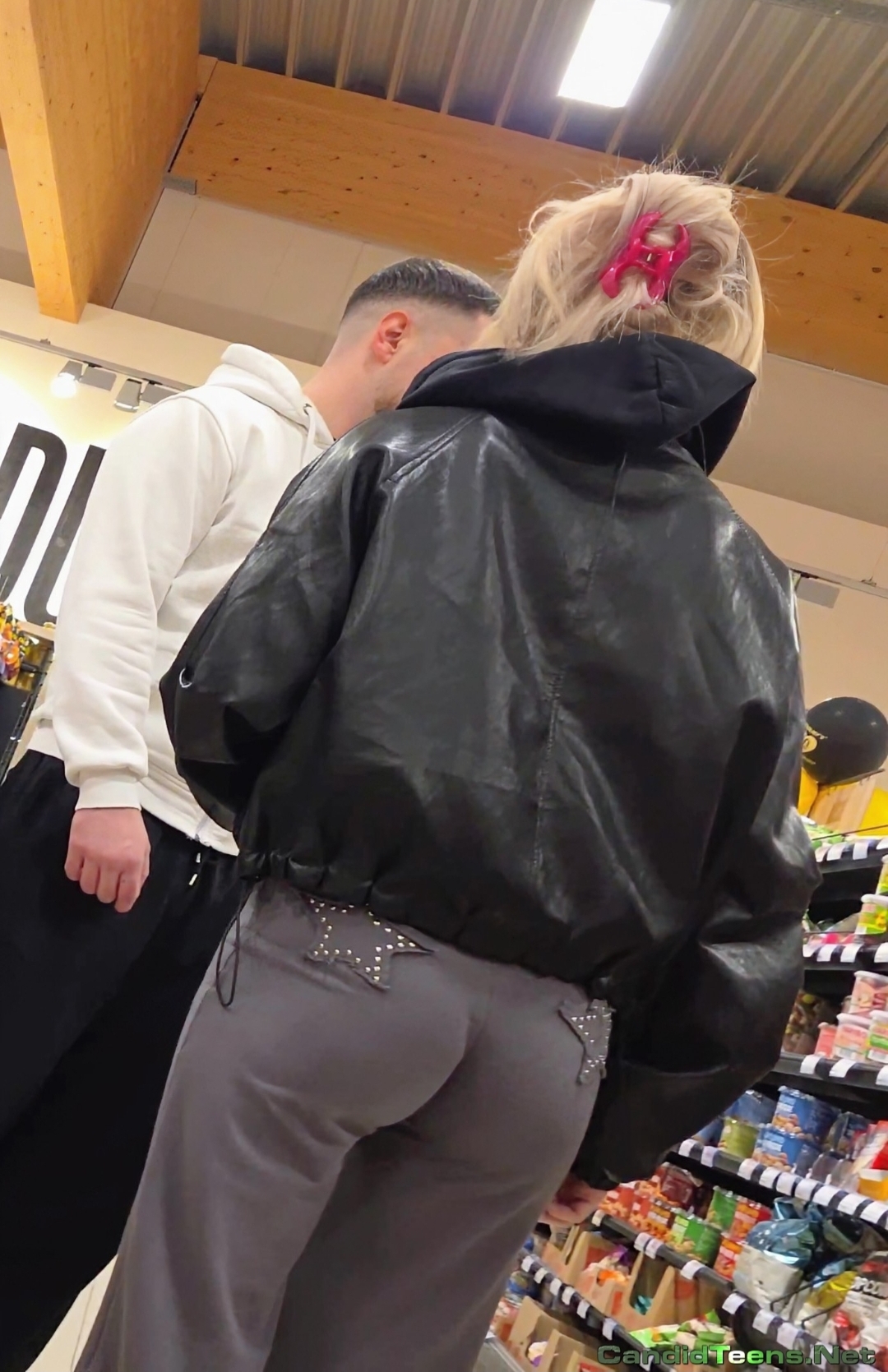 Hot candid supermarket footage of a stunning blonde girl in super tight grey pants with star ass that perfectly hug her round ass and curvy hips. She’s shopping casually with her boyfriend while the camera captures her amazing backside up close as she walks, stands, and turns in the snack aisle, don’t miss to download the video👇💦.
