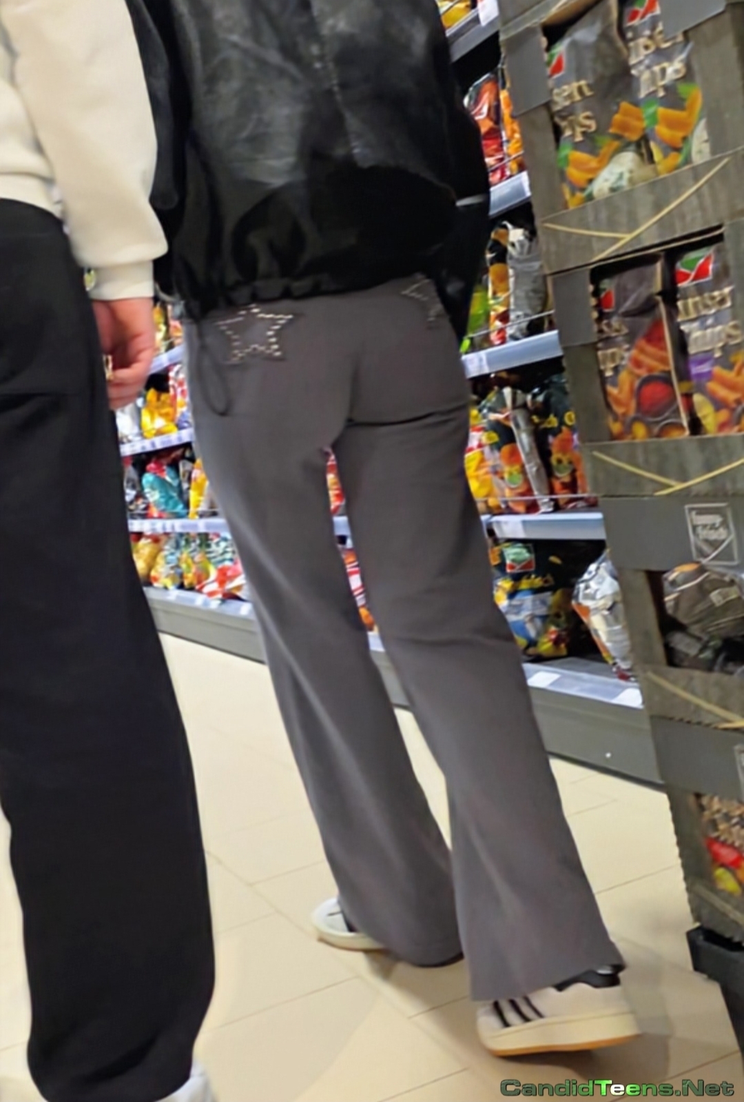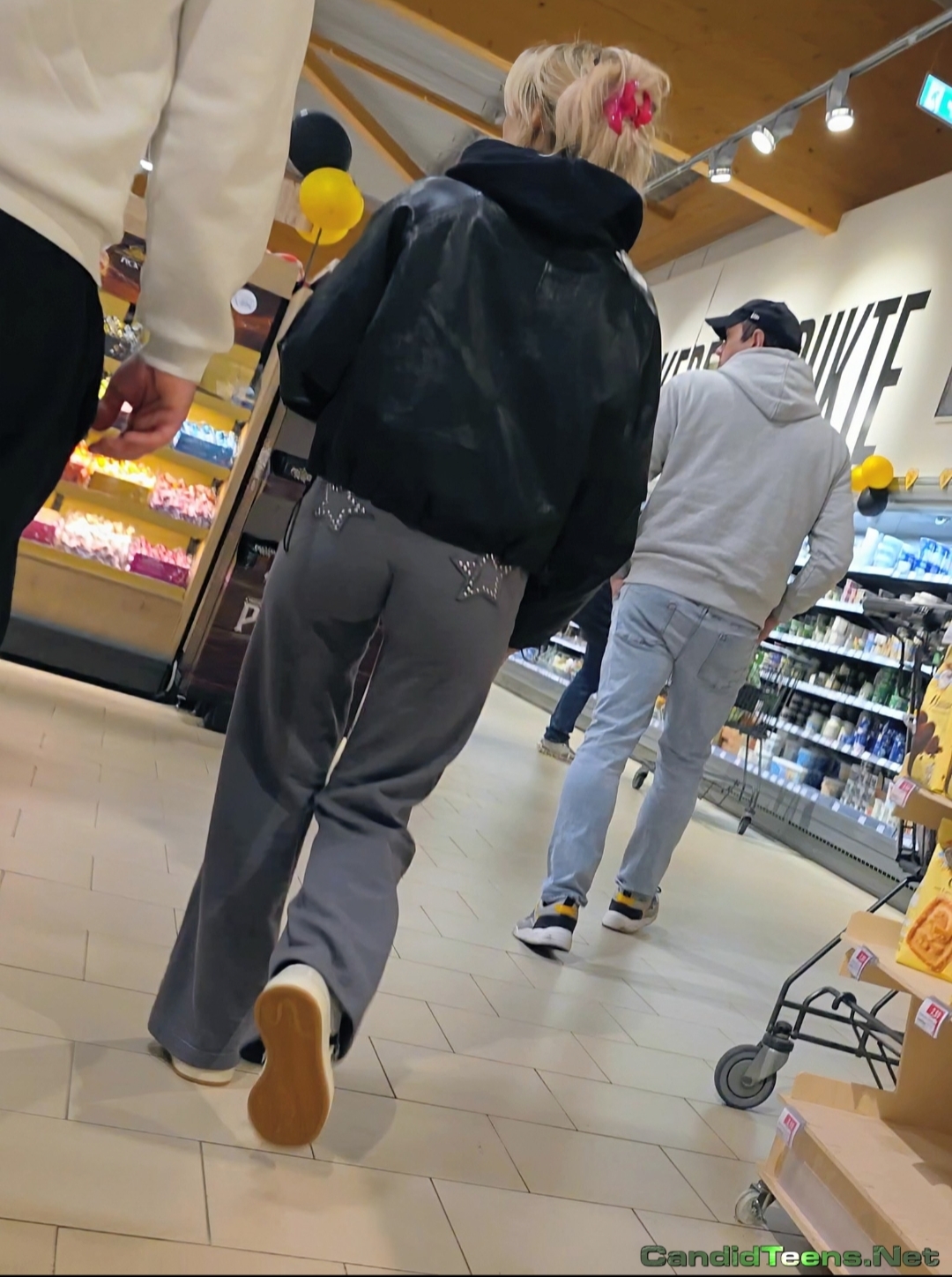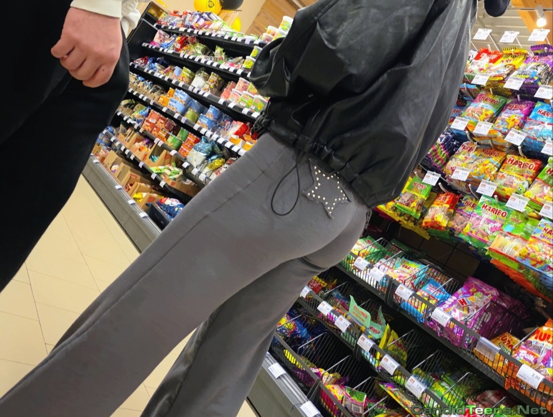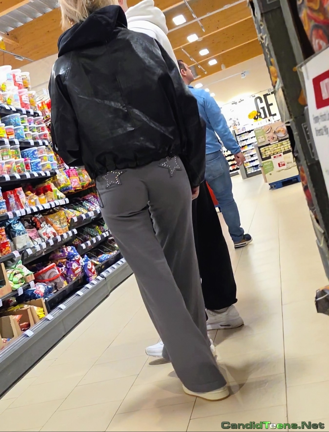 Hot candid supermarket footage of a stunning blonde girl in super tight grey pants with star ass that perfectly hug her round ass and curvy hips. She’s shopping casually with her boyfriend while the camera captures her amazing backside up close as she walks, stands, and turns in the snack aisle, don’t miss to download the video👇💦.