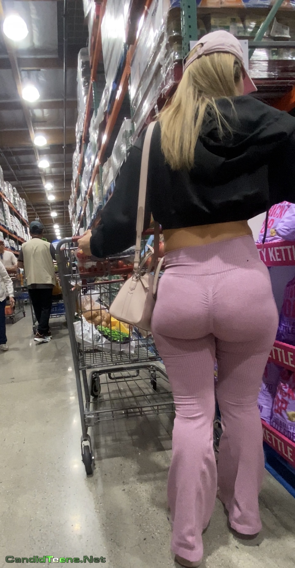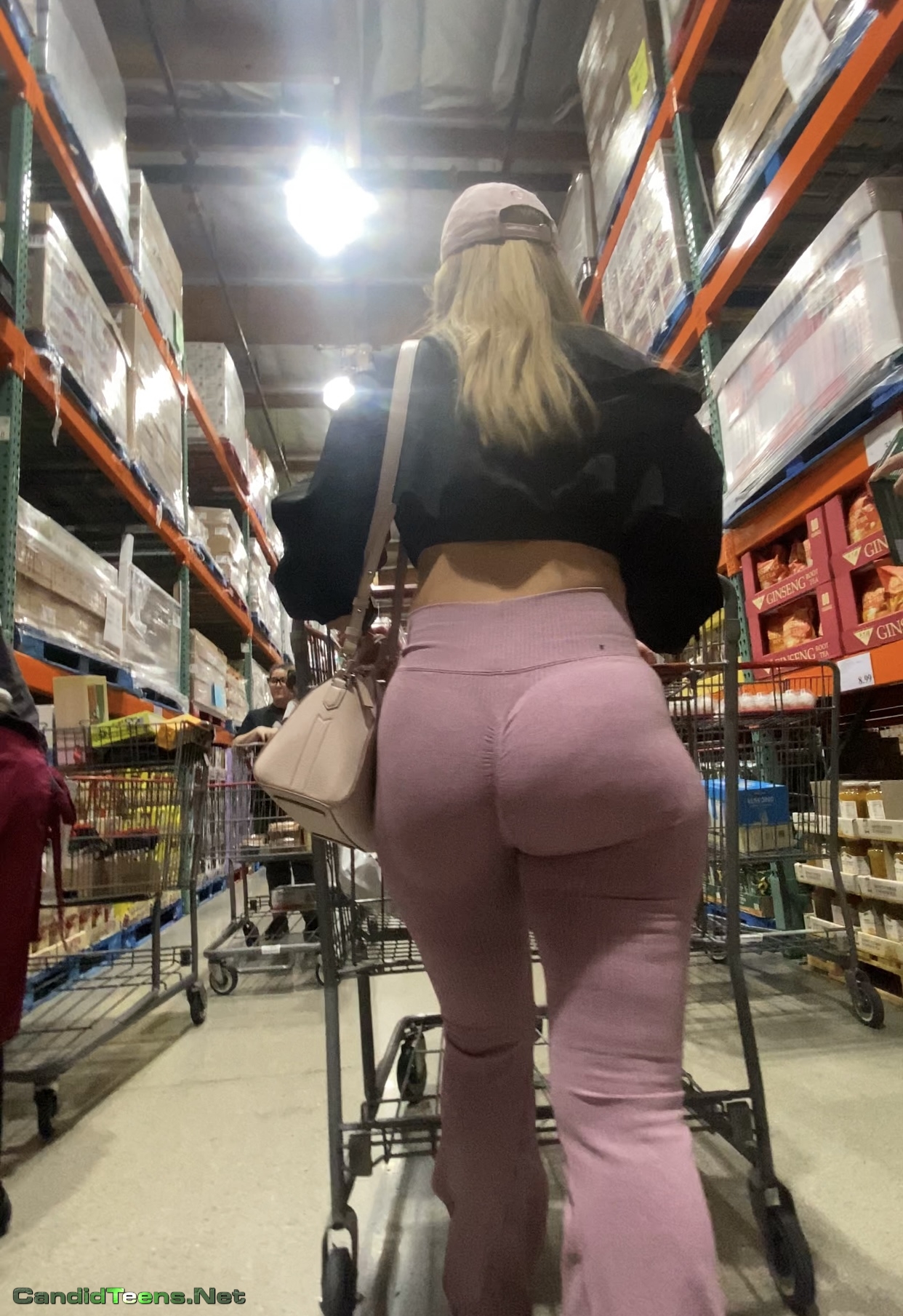 Thicc pawg sexy blonde baddie in pink pajama at store creepshots.