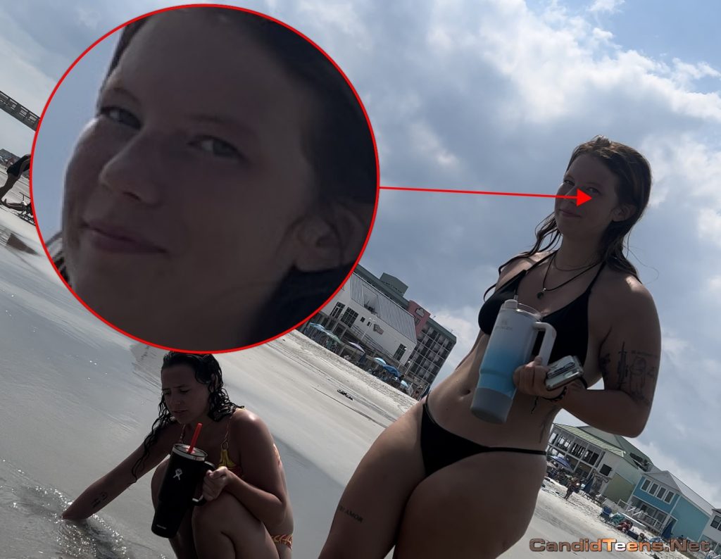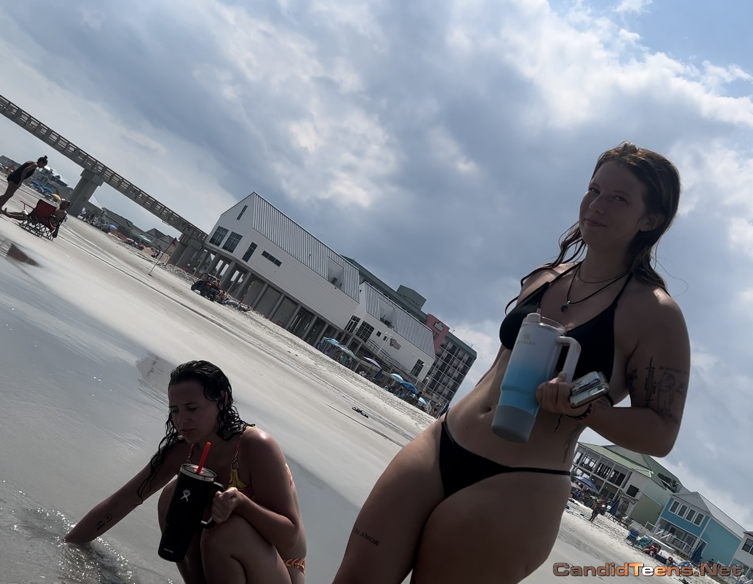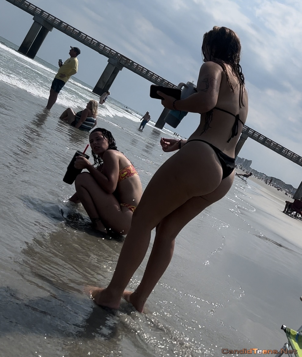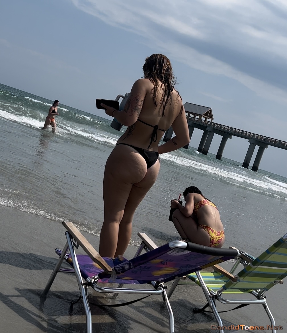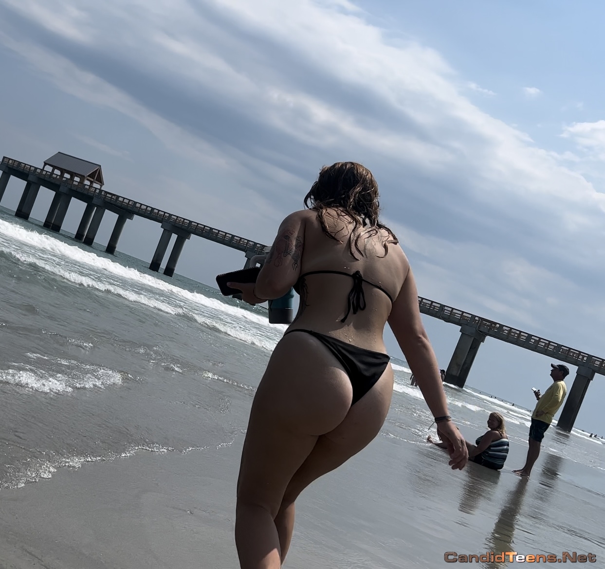 Hot wet baddie at beach gives teasey looks in tight wet thong , wet ass bendover caught on cam.