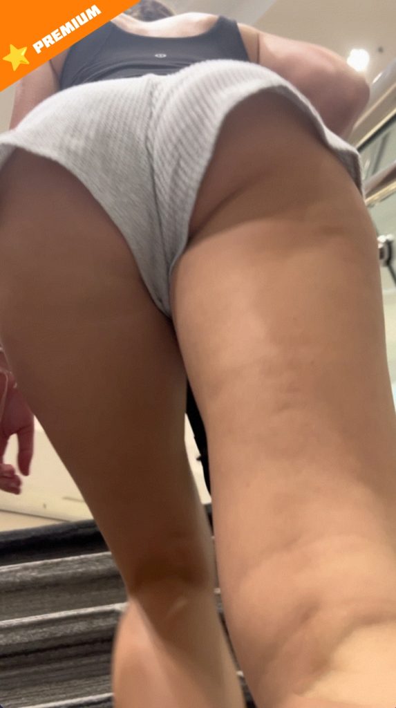 Hot bubble butt brunette tight ass in grey leggings pulled up creepshots.